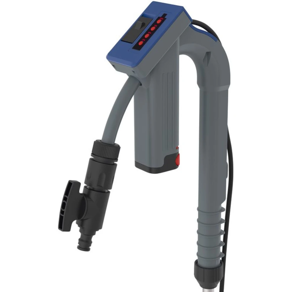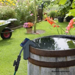 Die teleskopierbare Tauchpumpe ermöglicht eine Eintauchtiefe von 540 bis ca. 950 mm. Die Wasserpumpe wird einfach am Regenfassrand eingehÀngt und ist 360° drehbar.