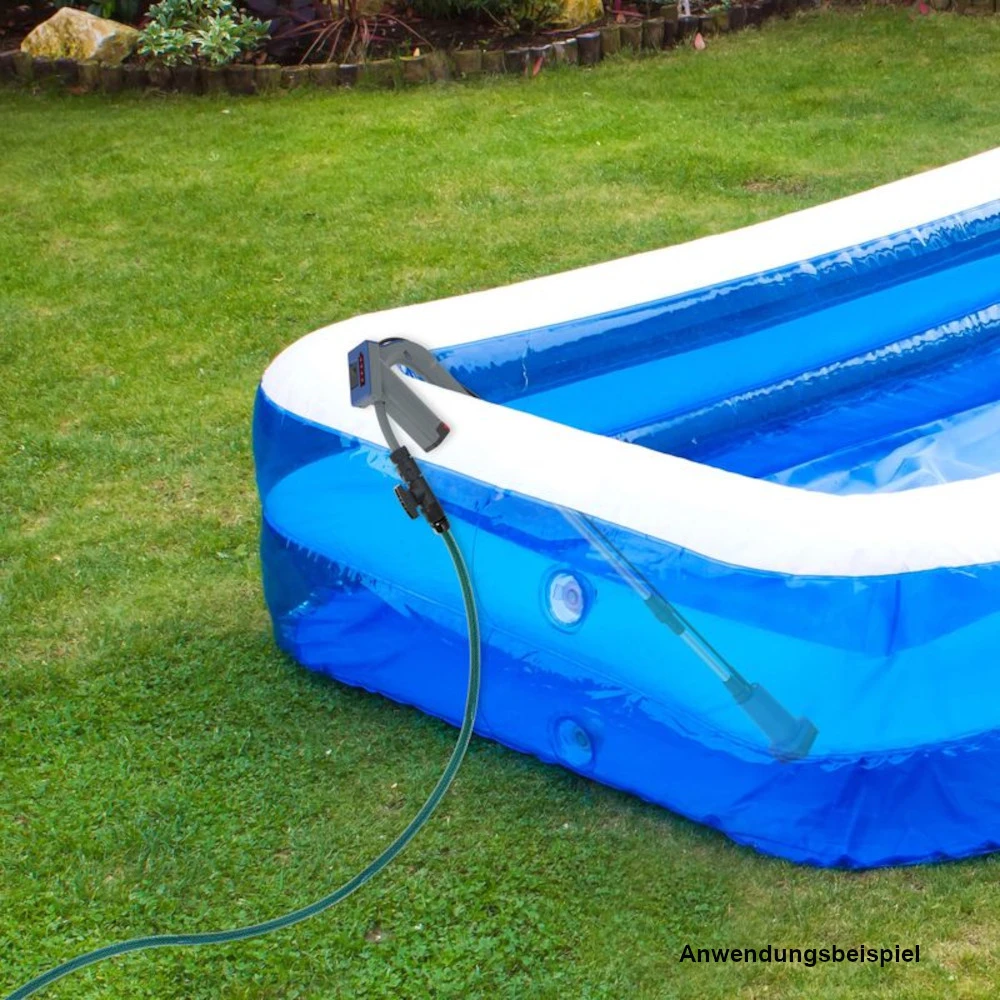 Akku-Regenfasspumpe von GĂŒde inklusive wechselbaren Akku und LadegerĂ€t. Die Gartenpumpe eignet sich ideal zur GartenbewĂ€sserung aus RegenfĂ€ssern und Entleeren von Pools oder Teichen.