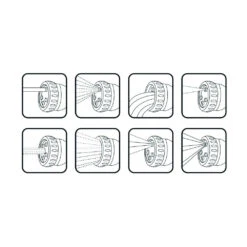 - Sprühformen: Nebel, Dusche, Düse, Einweicher, flach, mittig, Trichter, Dreieck