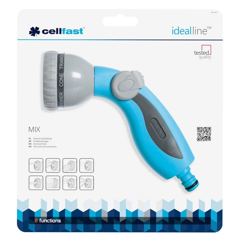 Die hochklassige Pistolenbrause von Cellfast lässt sich dank ihrer ergonomischen Form einfach und bequem bedienen. Der Wasserstrahl lässt sich einfach und einhändig am Griff regulieren. Die Gartenbrause zeichnet sich durch ihre 8 Sprühformen aus. Diese lassen sich durch Drehen des Kopfes beliebig einstellen.