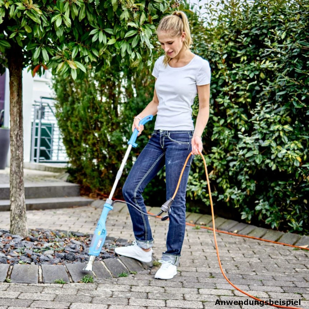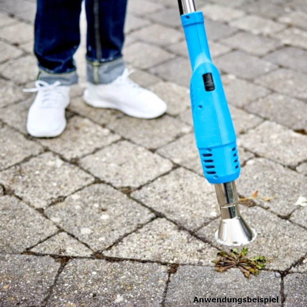 Der elektrische Unkrautbrenner EBG 662 von CFH lässt sich dank seinen zwei Heizstufen individuell einsetzen. Der rasche Temperaturanstieg führt zur starken Ausdehnung der Zellflüssigkeit, die Zellwände werden gesprengt, das Zelleiweiß gerinnt und das Unkraut stirbt ab. Es ist ausreichend, wenn die Pflanze nur im oberen Drittel abgeflammt wird. Durch sein Click und Go Stammes ist es möglich, den Unkrautbrenner leichter zusammen- oder auseinanderstecken. Für eine einfachere Handhabung der Unkrautvernichters sorgt der ergonomische Griff als auch der zusätzliche Ablageständer. Dank des mitgeliefertem Grillaufsatzes lässt sich der Elektro-Brenner auch als Grill- oder Kaminanzündhilfe einsetzen.