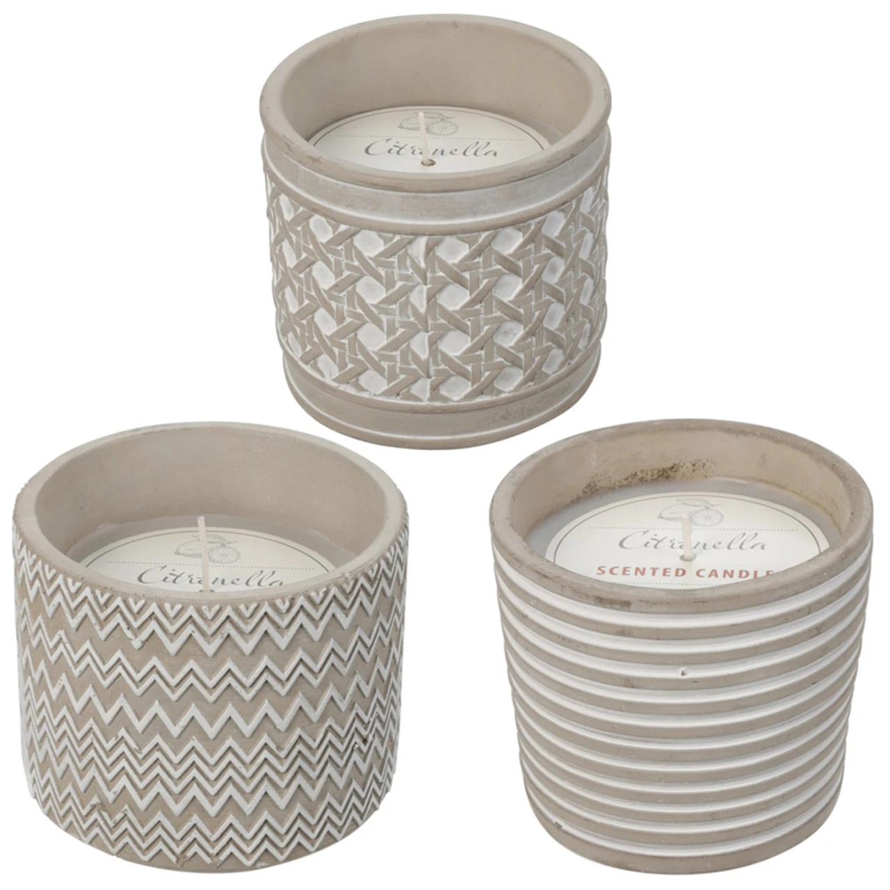 Citronellakerze Ø12×10 cm im Betontopf in verschiedenen Designs