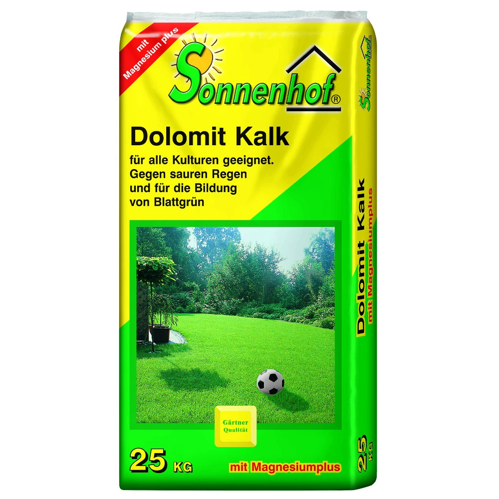 Sonnenhof Dolomit Kalk erschlieĂt den Boden und verbessert die KrĂŒmelstruktur und sorgt fĂŒr eine verbesserte Luft- und Wasserzirkulation. Neutralisiert schĂ€dliche BodensĂ€uren (Saurer Regen) und hilft darĂŒber hinaus gegen Moos im Rasen.