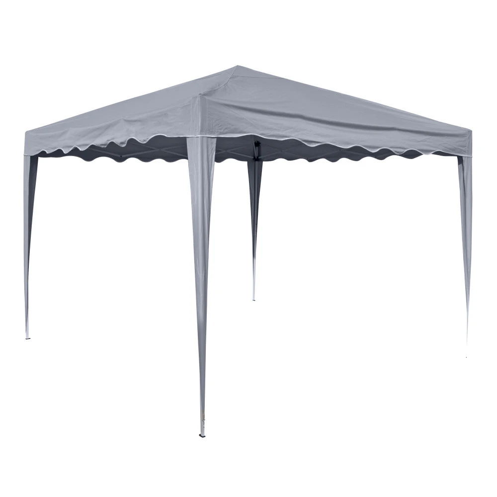 Der Faltpavillon kommt in einem stilvollen und zeitlosen grauen Design. Die Pop-up-Konstruktion ermöglicht eine einfache und schnelle Montage innerhalb weniger Minuten ohne zusĂ€tzliches Werkzeug. Das robuste Gestell aus Metall und die wasserabweisende Bespannung aus Polyester schĂŒtzen zuverlĂ€ssig vor Sonne, Regen und Wind.