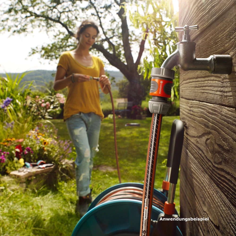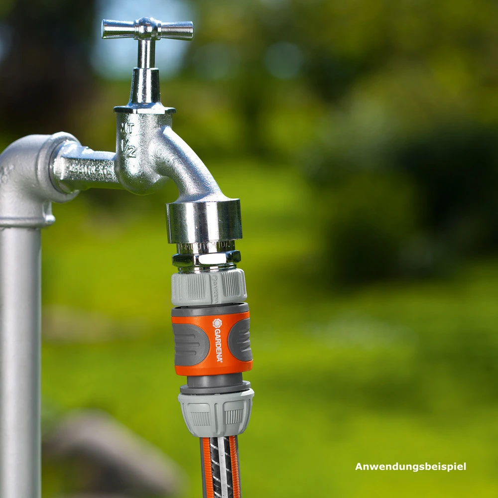 Der Schlauchverbinder von Gardena mit 1/2“-Stecksystem und 5/8“-Schlauchanschluss ermöglicht einen schnellen und komfortablen Schlauchanschluss. Seine gerillten Griffmulden aus Weichkunststoff sorgen für angenehme Handhabung. Dabei garantiert die Spannmutter eine besonders hohe Schlauchhaltekraft. Durch einfaches Ziehen lässt sich die Verbindung lösen.