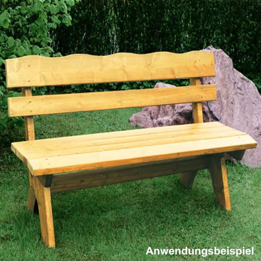 Diese pflegeleichte Gartenbank wurde aus massivem Kiefernholz mit einer LattenstĂ€rke von ca. 35 mm gefertigt und damit Ă€uĂerst stabil und robust. Durch die hellbraune ImprĂ€gnierung wird die natĂŒrliche Optik bewahrt. Da das Holz vor der Anwendung kammergetrocknet wurde, ist es besonders robust und witterungsbestĂ€ndig. Dadurch ist die Bank gefestigt und stabil.