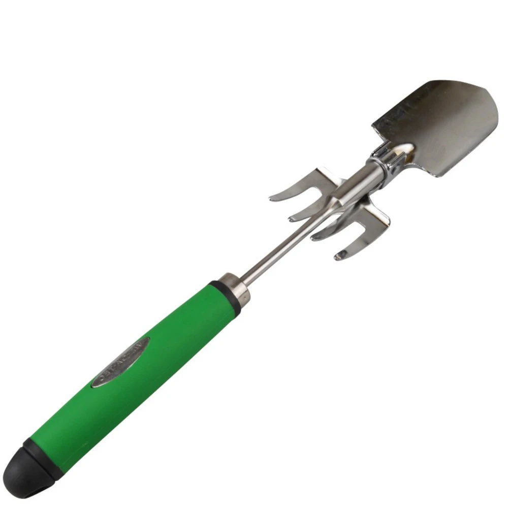 Dieses hochwertige 2-in-1-Friedhofswerkzeug ist praktisch und handlich und kann sowohl bei der Grabpflege als auch im Garten eingesetzt werden. Es wird in einem verschlieĂbaren Beutel geliefert, welcher den Transport erleichtert und Verschmutzungen vermeidet. Ein einfacher Schraubmechanismus ermöglicht es, entweder die Schaufel oder die Harke zu verwenden. Nach Gebrauch lĂ€sst sich das GartengerĂ€t platzsparend zusammenklappen. Die Arbeit wird dank des weichen Kunststoffgriffs erleichtert.