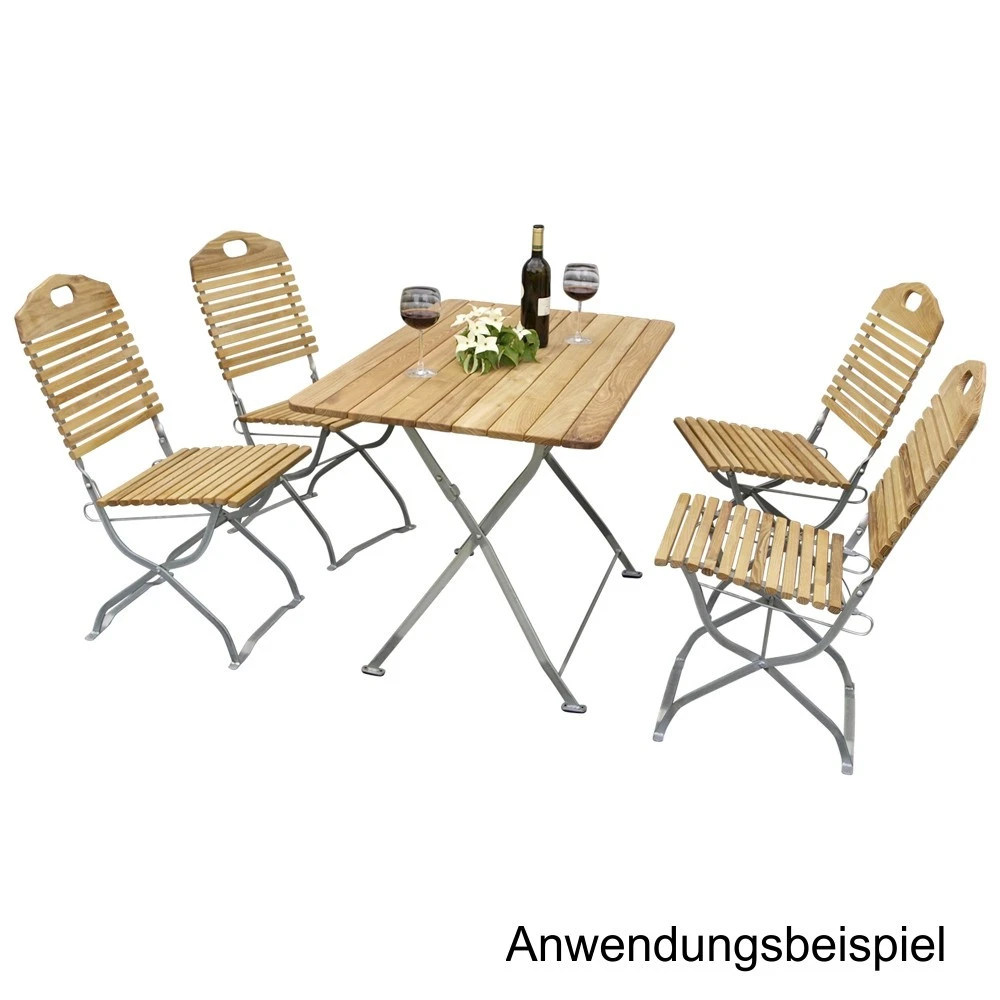 Die 5-teilige Gartensitzgruppe im Kurgartendesign bietet Platz fĂŒr 4 Personen. In dem faltbaren Set aus stabilem, wetterfestem Robinienholz sind ein Tisch sowie vier StĂŒhle enthalten. FĂŒr Partys, Grillabende oder einen gemĂŒtlichen Abend mit Freunden und Familie ist das Gartenset perfekt geeignet.Das Gestell der StĂŒhle und des Tisches ist aus massivem Flach- und Rundstahl gefertigt.
