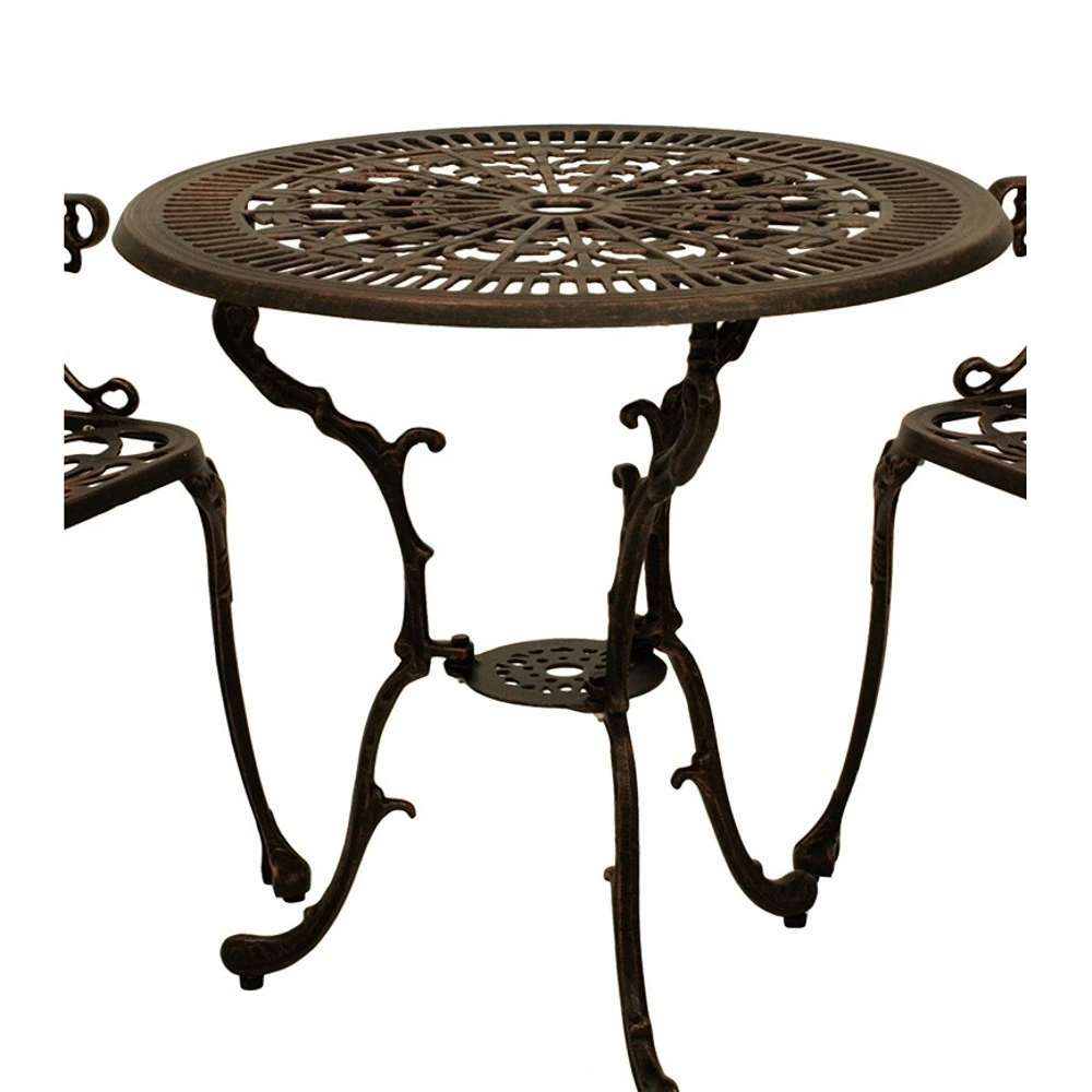 5-teilige Gartensitzgruppe in Jugendstil-Optik. Das Metall-Gartenmöbel-Set ist aus einem wetterfesten Aluminiumguss in Bronze-antik gefertigt. Durch die offene Struktur und Beschichtung sind die Metall-Gartenmöbel sehr pflegeleicht und ein wahrer Blickfang.