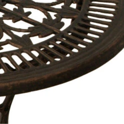 Runder Gartentisch mit Ornamenten in Jugendstil-Optik. Der Metall-Gartentisch ist aus einem wetterfesten Aluminiumguss in Bronze-antik gefertigt. Durch die offene Struktur und Beschichtung ist der Metall-Gartentisch sehr pflegeleicht und ein wahrer Blickfang. Der Metalltisch hat ein Gewicht von ca. 6,5 kg.