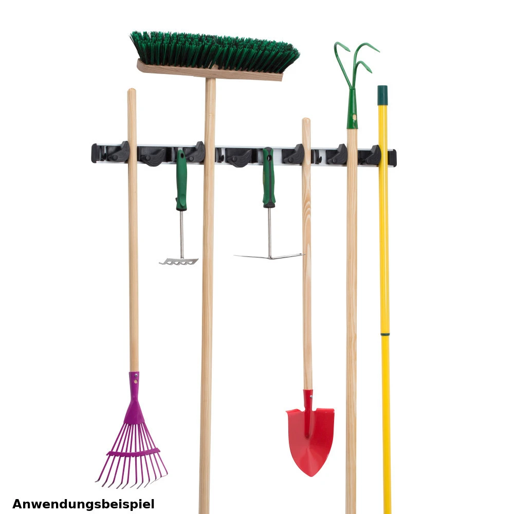 Die praktische GerĂ€teleiste sorgt fĂŒr mehr Ordnung in deiner Werkstatt, Garage oder Haushalt. Mit den jeweils 5 Haken und Halterungen ist es möglich lange Werkzeuge, Garten- oder HaushaltsgerĂ€te bis max. 2,5 kg aufzuhĂ€ngen.