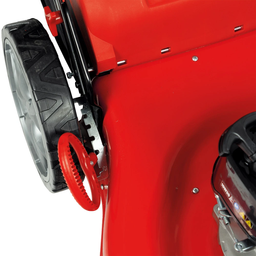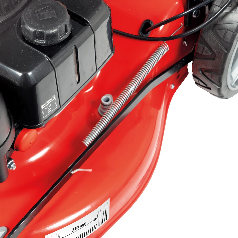 Mit dem BenzinrasenmĂ€her BRM 5117 A mit robustem StahlgehĂ€use von GERMANIA wird das MĂ€hen von RasenflĂ€chen zum Kinderspiel. Dank des zuschaltbaren Hinterradantriebes sind auch Hanglagen kinderleicht zu bewĂ€ltigen. Sein ergonomisch geformter, klappbarer und zwei-fach höhenverstellbarer Fahrgriff erleichtert die Handhabung des RasenmĂ€hers. Die 6-fache zentrale Schnitthöhenverstellung, der leistungsstarke 3,7 PS-Motor, das Mulchkit, der Seitenauswurf als auch der Grasfangkorb mit ca. 70 Liter Fassungsvermögen runden den benzinbetriebenen RasenmĂ€her ab. Mit Wasseranschluss fĂŒr die einfache Reinigung.