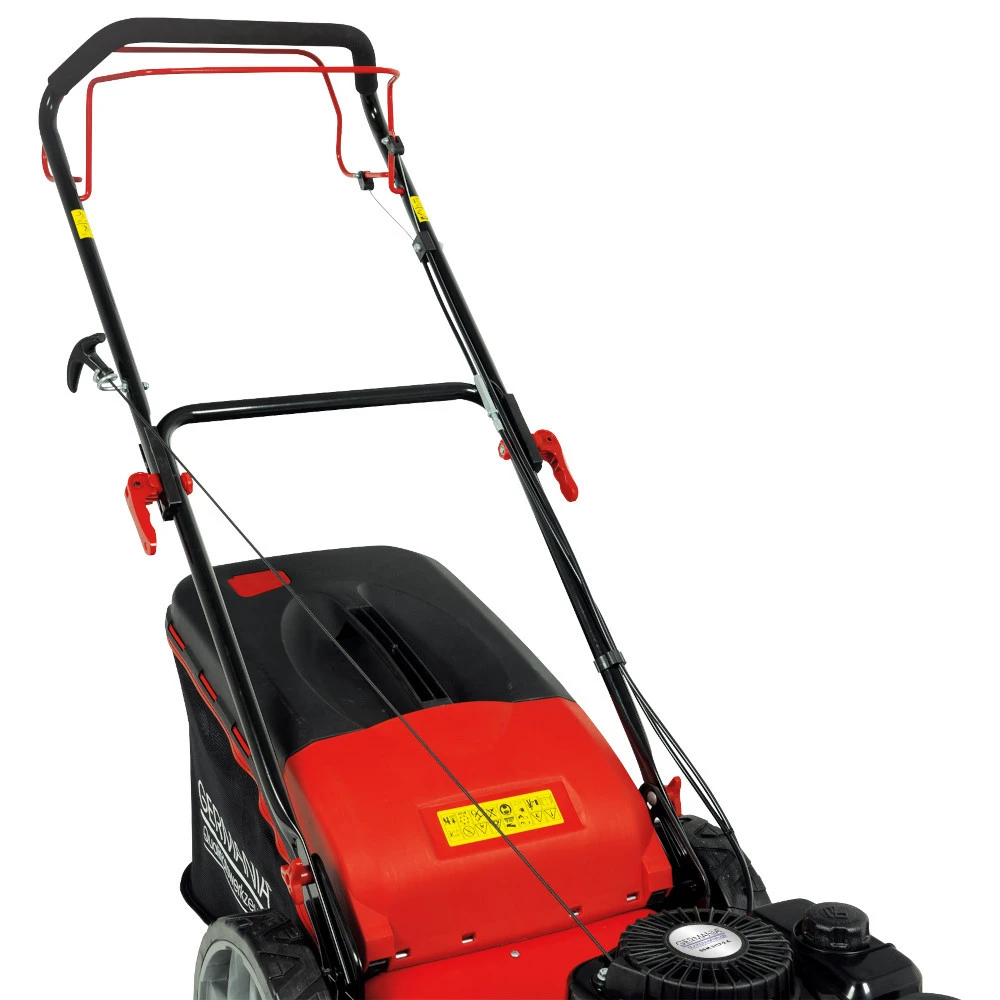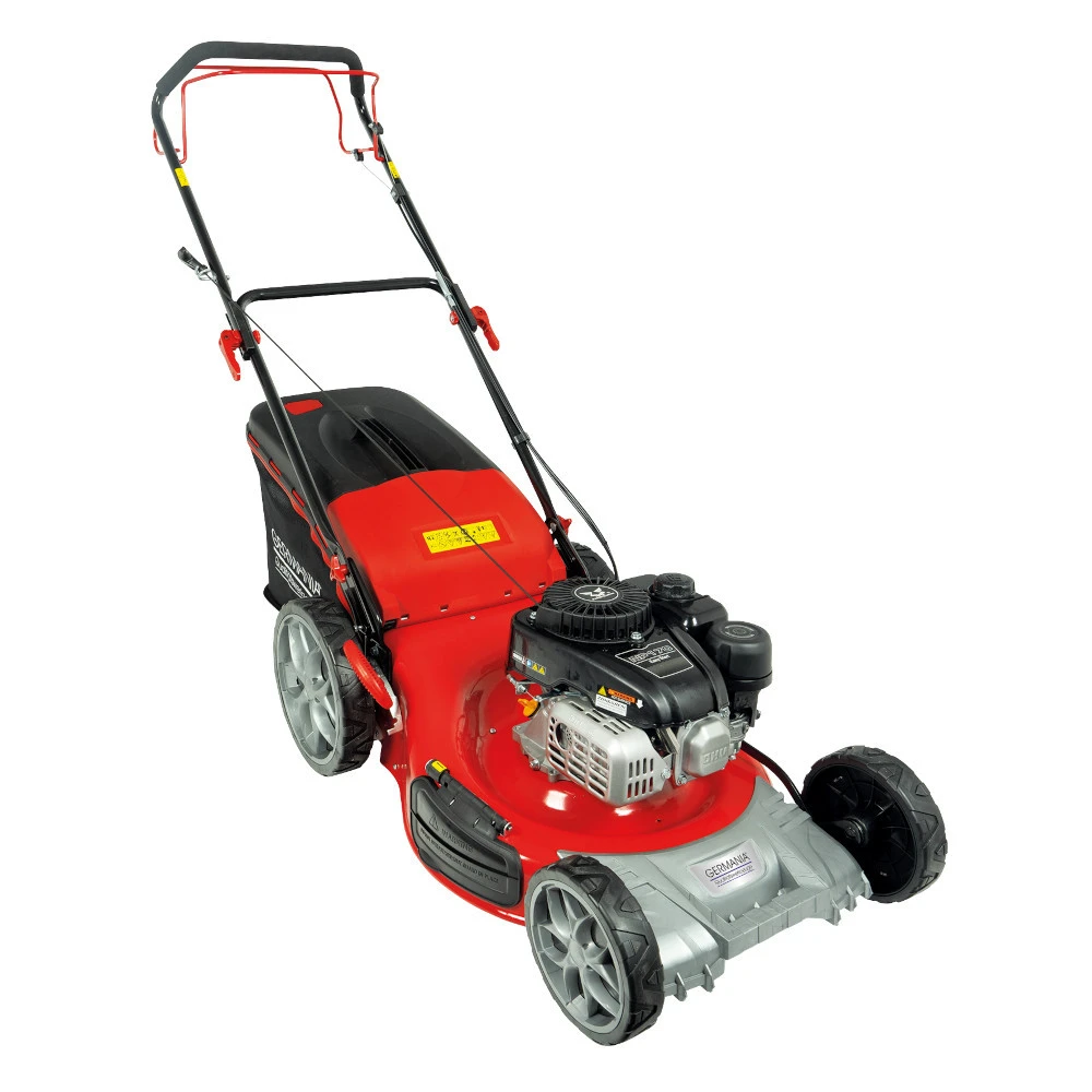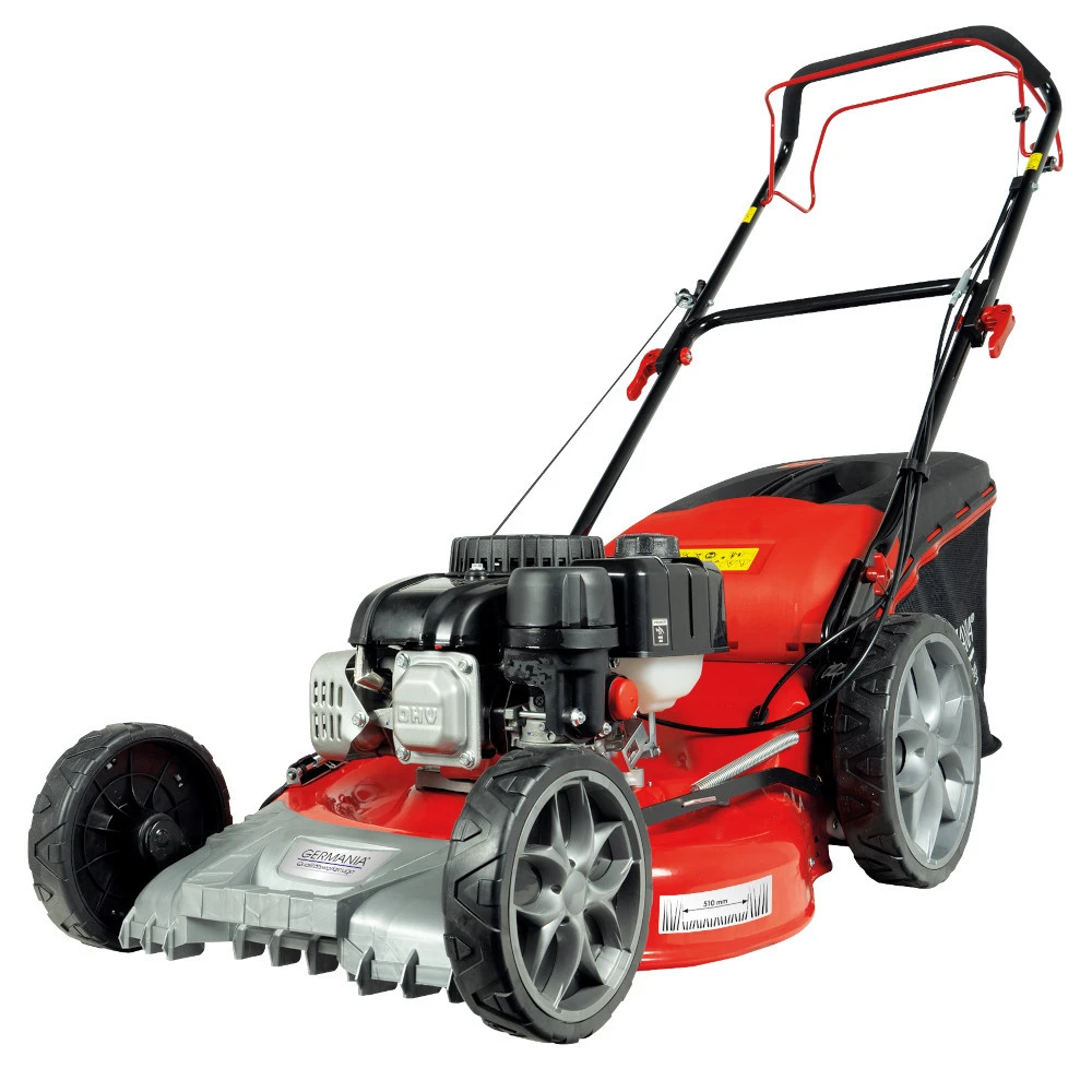 - 1 x GERMANIA Benzin RasenmÀher BRM 5117 A mit 3,7 PS und Hinterradantrieb