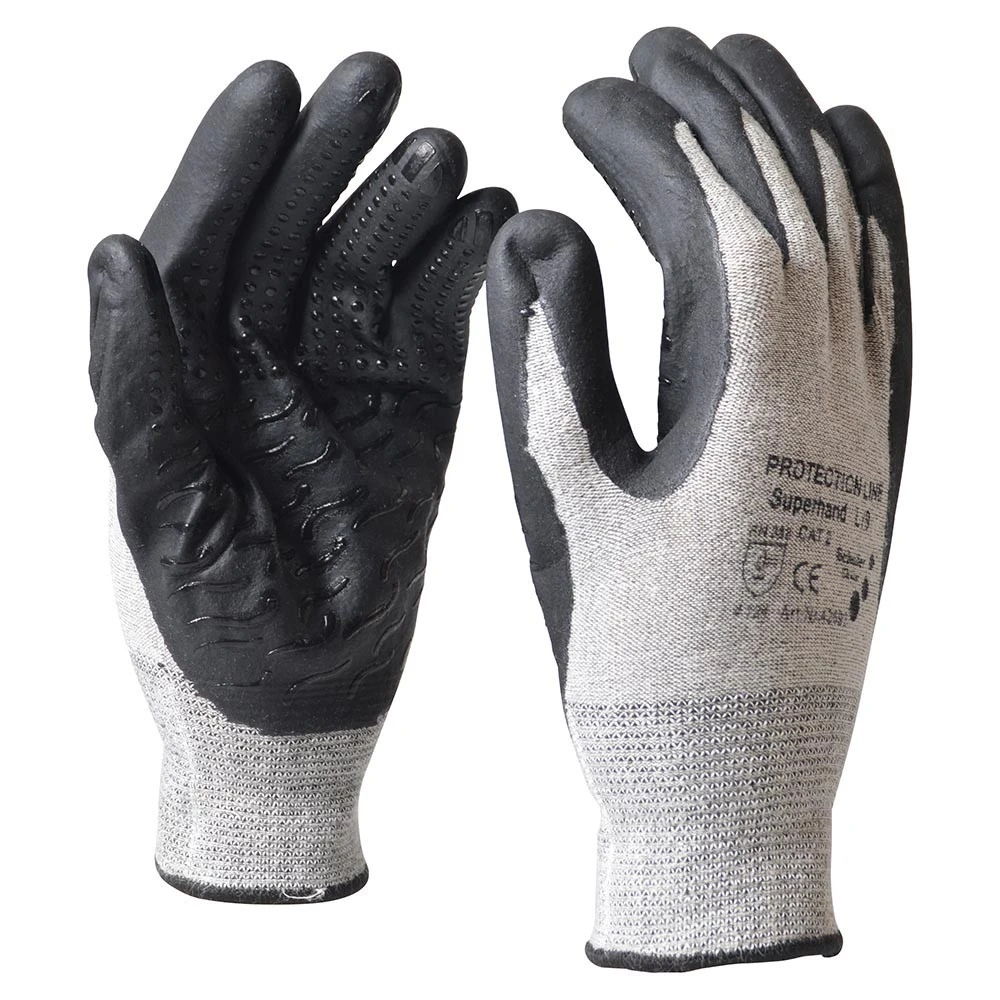 Die nahtlosen Feinstrickhandschuhe mit Noppen und Beschichtung aus Nitril-Mikroschaum sind besonders wasserabweisend und atmungsaktiv. Die gestreifte Beschichtung sorgt fĂŒr einen besseren Halt bei der Arbeit. AuĂerdem gewĂ€hrleisten die Handschuhe ein sehr gutes Tastempfinden.