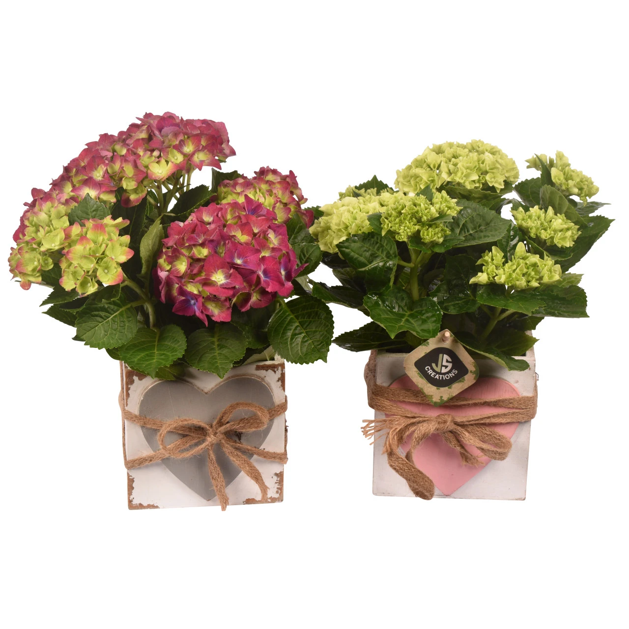 - dekoratives Holzgefäß mit schöner Bepflanzung