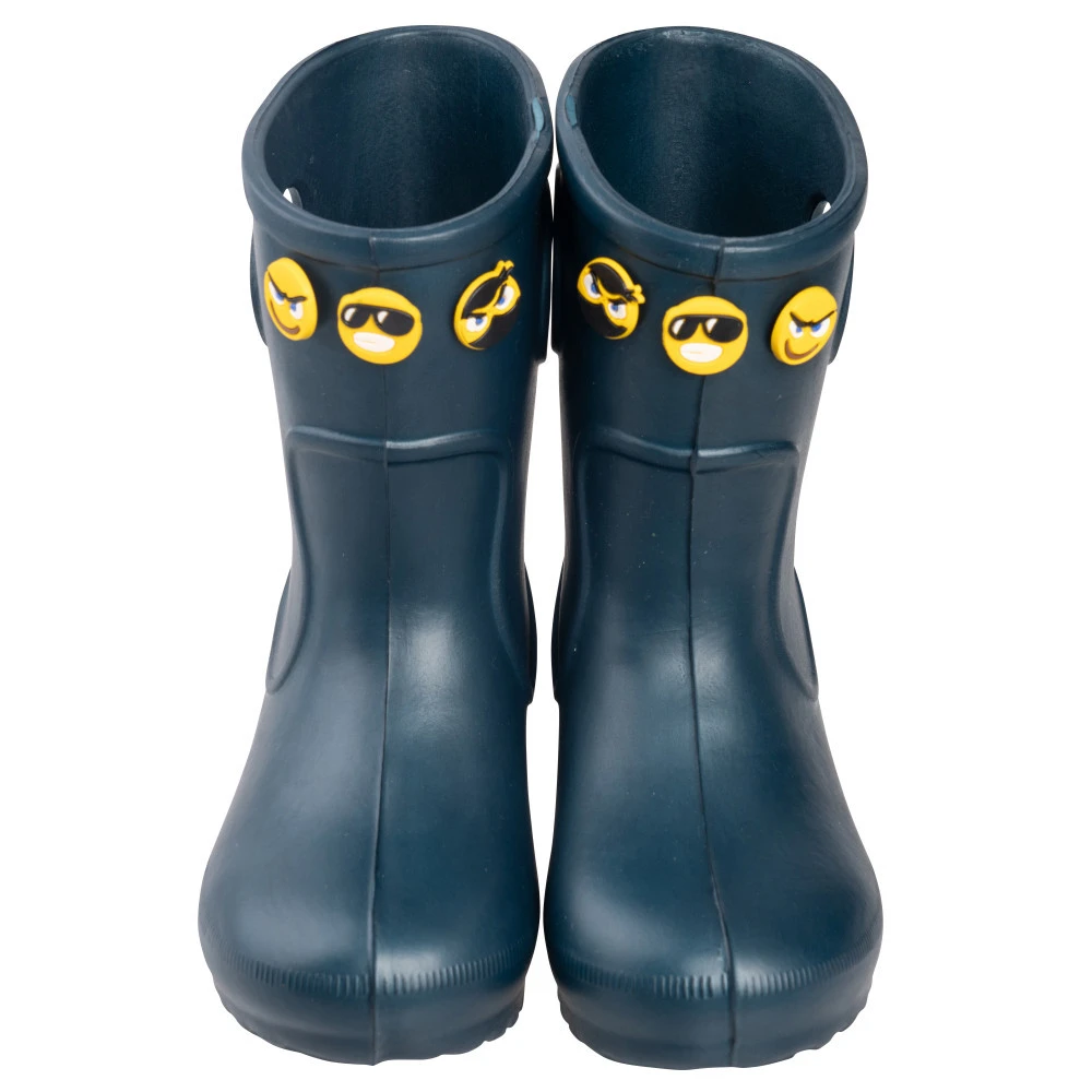 Die Kindergummistiefel in Navy sind das richtige Schuhwerk fĂŒr den kleinen Helfer. ErhĂ€ltlich sind die Stiefel in verschiedenen GröĂen. Aufgrund des leichten, wasserdichten Materials werden die FĂŒĂe nicht so schnell mĂŒde. AuĂerdem sind die Schuhe mit verschiedenen Smileys verziert, was den Kindern ein LĂ€cheln ins Gesicht zaubert. Mit dem groben Profil verliert man auch im Gartenteich oder auf nassem und matschigem Boden nicht den Halt und hat einen sicheren Stand.