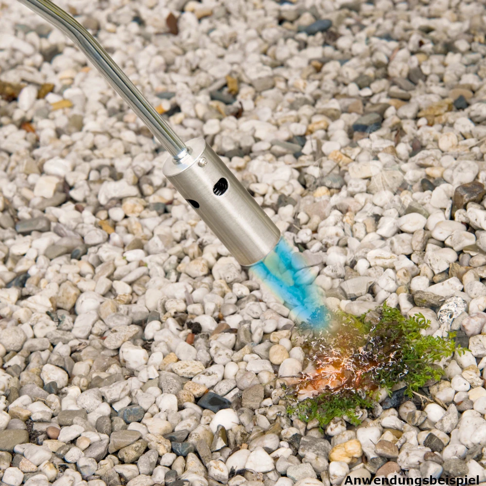 Der gasbetriebene Unkrautvernichter von Kinzo mit PiezozĂŒndung und 80 cm langem Aluminiumrohr zur Beseitigung von Unkraut oder Moos. Durch die einstellbare Flammentemperatur von 800 bis 1200 °C fĂŒhrt es beim Unkraut zu einer starken Ausdehnung der ZellflĂŒssigkeit, die ZellwĂ€nde werden gesprengt, das ZelleiweiĂ gerinnt und das Unkraut stirbt ab. DarĂŒber hinaus kann der Gasbrenner auch als Grill- oder KaminanzĂŒnder eingesetzt werden. FĂŒr eine einfachere Handhabung des Unkrautbrenners sorgt der ergonomische Griff.