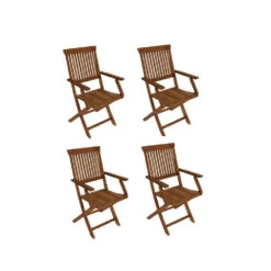 4 Gartenstuhl-Hochlehner aus geöltem Akazienholz im Set. Das Holz der Klappstühle stammt aus nachhaltigem Anbau und wurde umweltschonen geerntet.