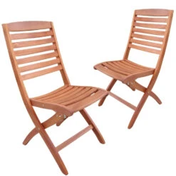 2-teiliges Gartenstuhl-Hochlehner-Set aus geöltem Eukalyptusholz. Das Holz der Klappstühle wurde besonders umweltschonend und nachhaltig angebaut.