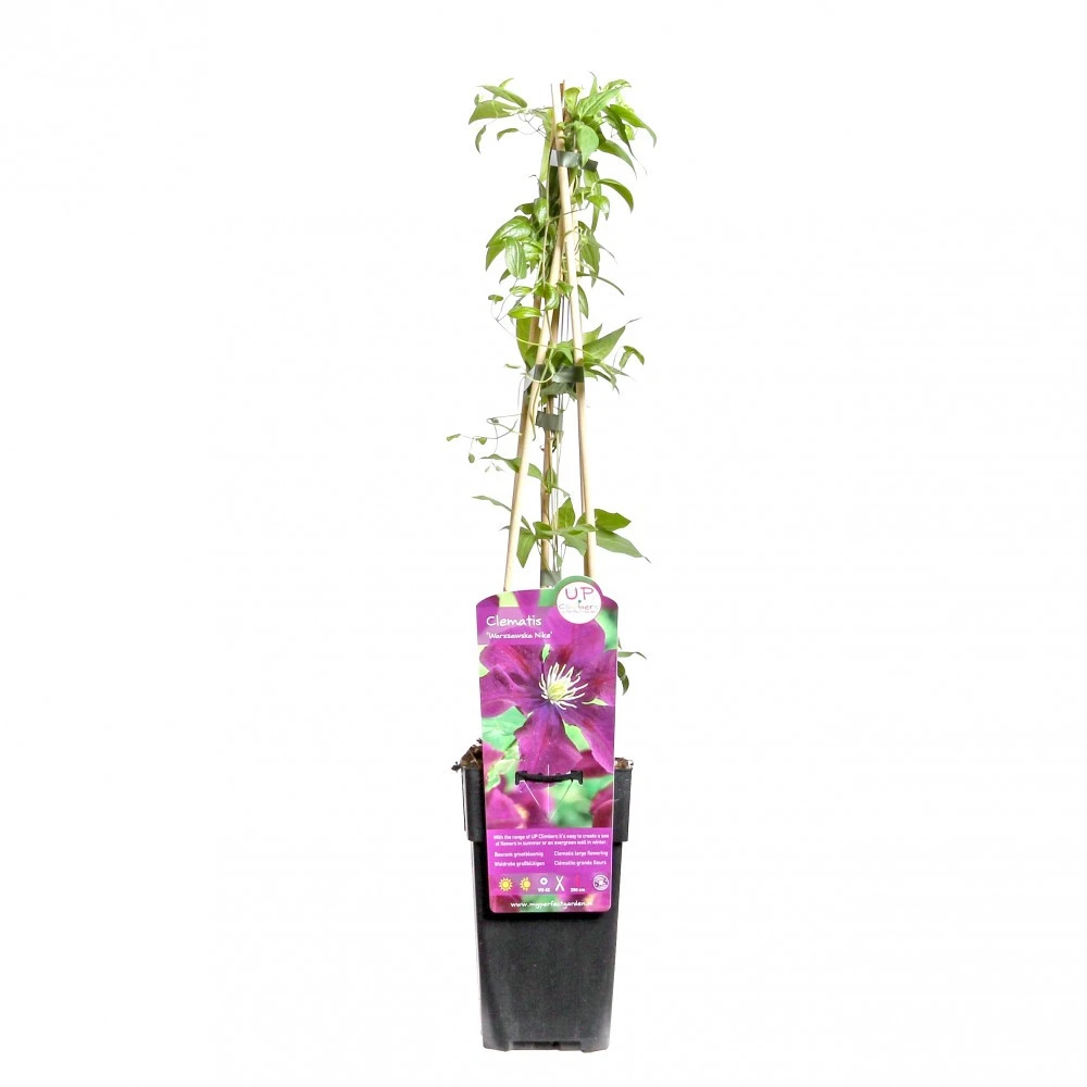 Kletterpflanzen Clematis, verschiedene Sorten im robusten Blumentopf