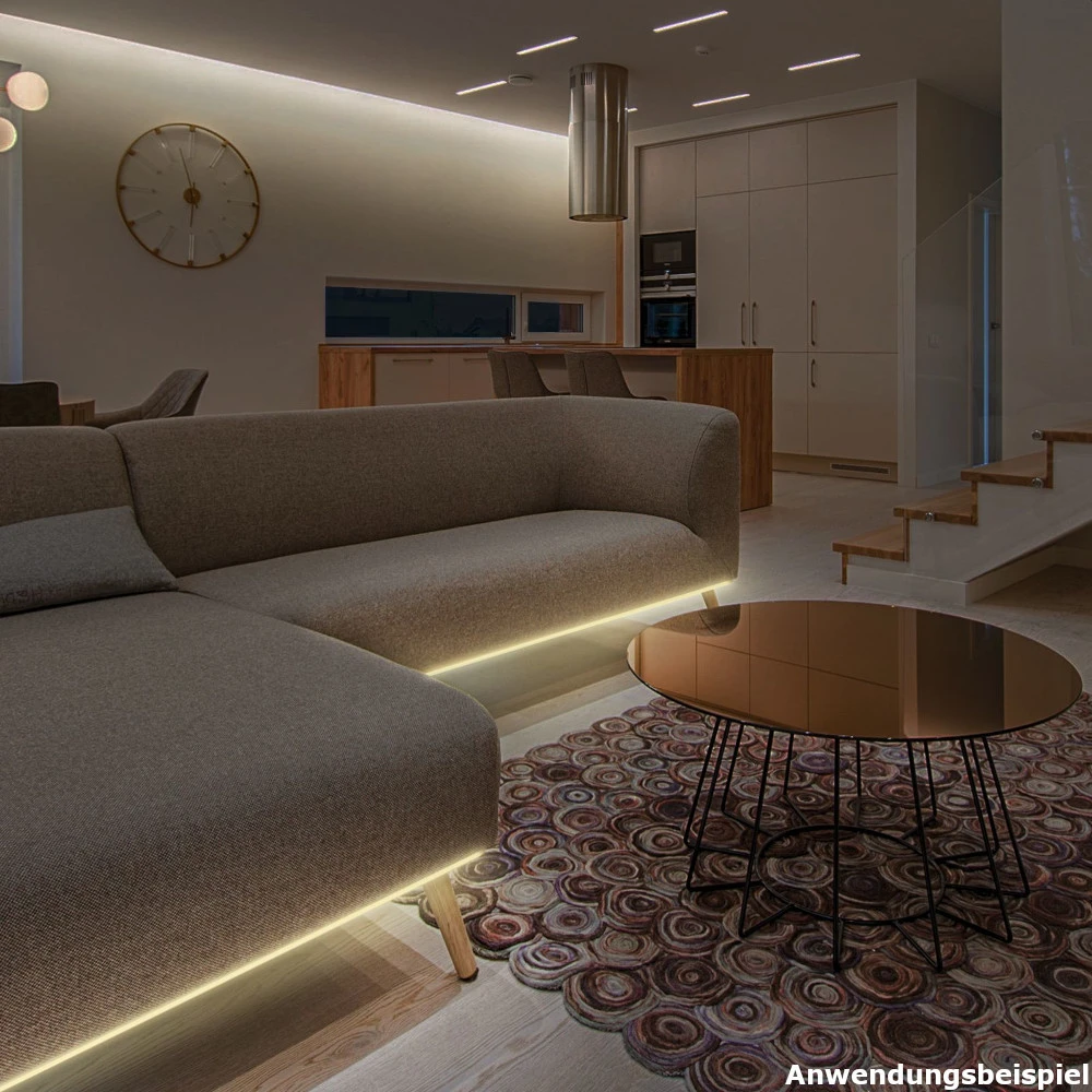 Das warmweiĂe, 3 m lange LED-Band sorgt fĂŒr eine gemĂŒtliche, helle und gleichmĂ€Ăige Beleuchtung. Dank des Bewegungssensors schaltet sich das Licht automatisch ein, sobald man vorbeigeht. Durch den Abstrahlwinkel von 120° deckt die Lichtleiste eine besonders groĂe FlĂ€che ab und kann daher auch kleinere RĂ€ume optimal beleuchten. Die 90 integrierten LEDs vom Typ 2835 schaffen eine stimmungsvolle AtmosphĂ€re und vermitteln ein GefĂŒhl von WĂ€rme in den RĂ€umlichkeiten. Die Lichtleiste benötigt eine Spannung von 5 V und funktioniert kabellos. Zur Stromversorgung werden 4x AAA-Batterien benötigt, welche nicht im Lieferumfang enthalten sind. Mit dem integrierten Steuerelement können 2 verschiedene Funktionen gewĂ€hlt werden. Im ersten Modus wird das Licht automatisch ĂŒber den Bewegungssensor eingeschaltet und bleibt 20 Sekunden lang aktiviert. Im zweiten Modus wird die Beleuchtung manuell eingeschalten und bleibt dauerhaft in Betrieb. Die LED-Lichterkette kann flexibel eingesetzt werden. So zum Beispiel als Hintergrundbeleuchtung an der Wohnzimmerwand, der Vitrine, als Schaufensterdekoration oder zur Dekoration der eigenen Lieblingspartys. Weitere Einsatzorte sind BĂ€der, Wohn- und Schlafzimmer, sowie Flure und TreppenhĂ€user. Der Streifen kann zudem gebogen werden und lĂ€sst sich somit sauber um die Ecke legen.