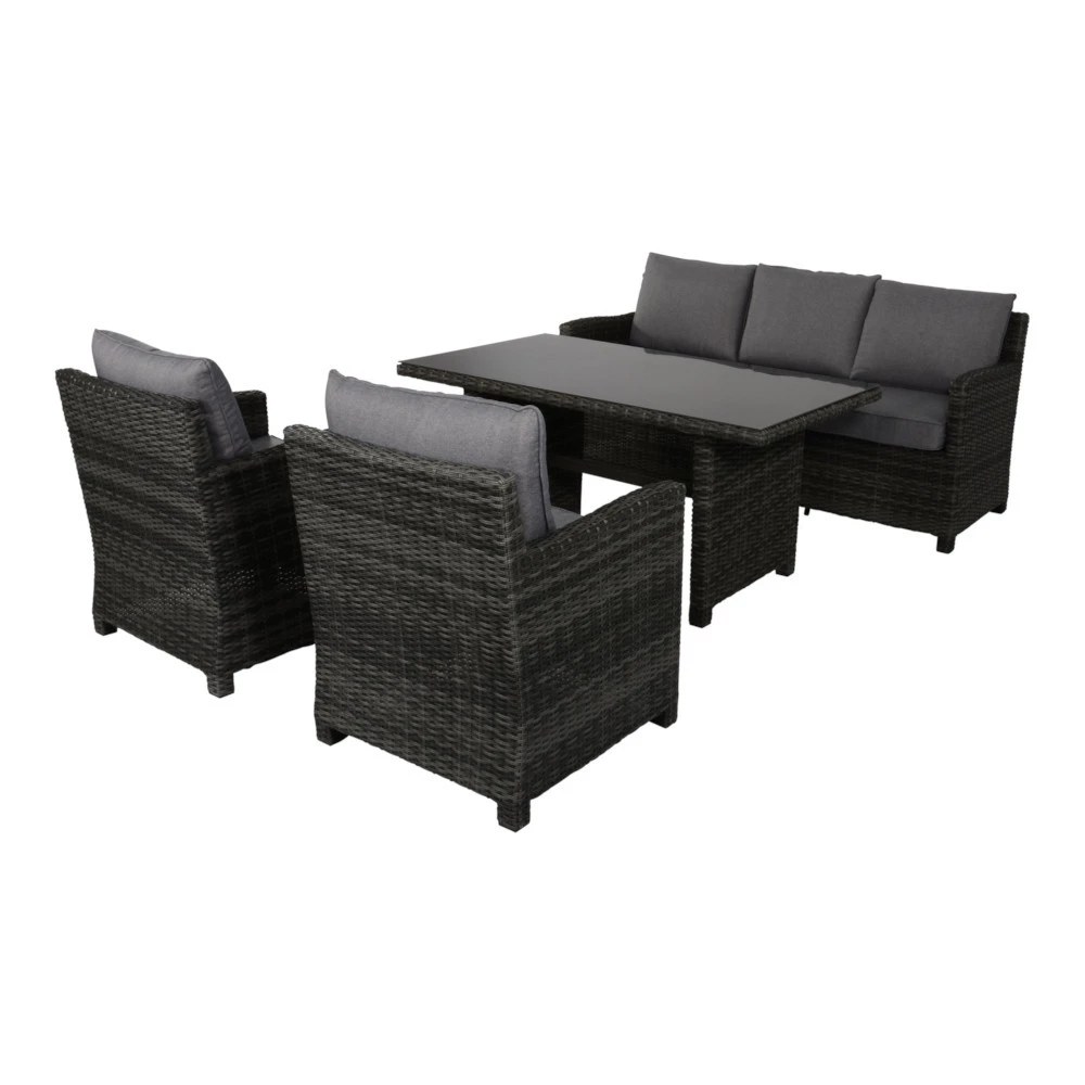 Lounge-Set Dining Jive Rock 4-teilig, 5-Sitzer mit Aluminiumgestell, Tisch und Sofas
