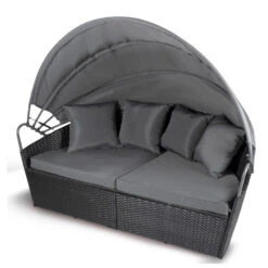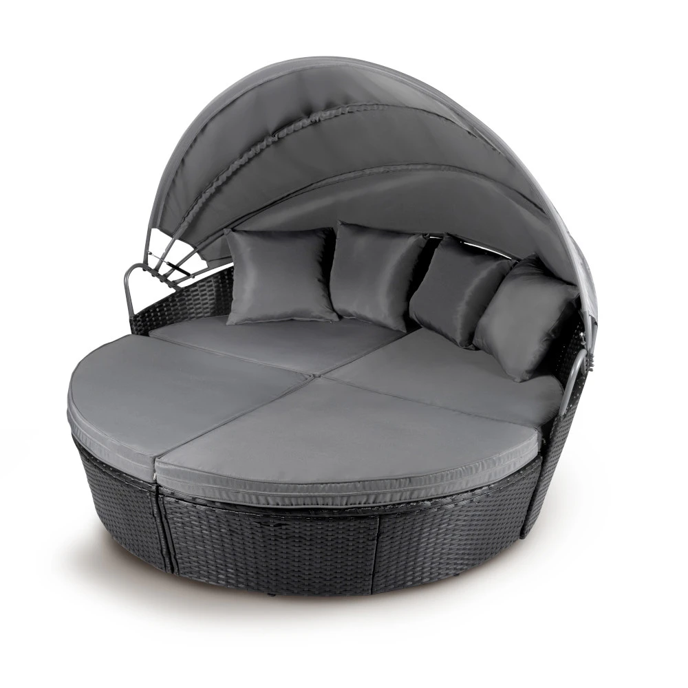 Loungebett Ibiza Ø 180 x 140 cm für 2 Personen mit Sonnendach und Polyrattan-Geflecht in Anthrazit