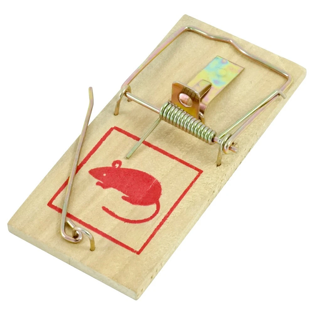 Hochwertige Mausefalle aus Holz zur Verwendung mit klassischen Ködern wie Käse, Speck, Schokolade oder Brot.