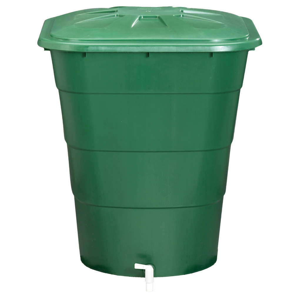 Die klassische quadratische Regentonne aus 100% recycelbarem Kunststoff ist die einfachste und bequemste Art, Regenwasser zu sammeln. Sie besitzt ein Fassungsvermögen von 203 Litern und bietet eine stabile Konstruktion des Bodens und der Stapelkante. Die Regentonne ist mit einem Deckel und einem Ausgießer ausgestattet.