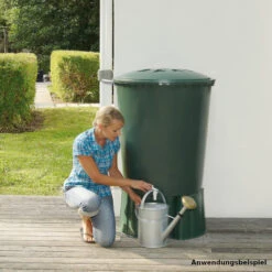 Regentonne rund mit 310 Liter Fassungsvermögen in grün, inklusive Deckel und Auslaufhahn