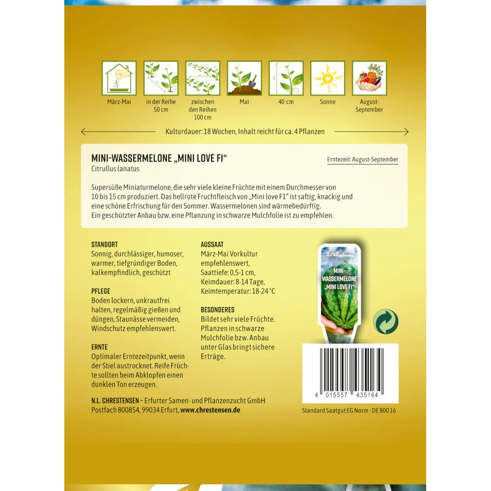 - 1 x Saatgut Mini-Wassermelone Mini Love F1 (ausreichend fĂŒr ca. 4 Pflanzen)