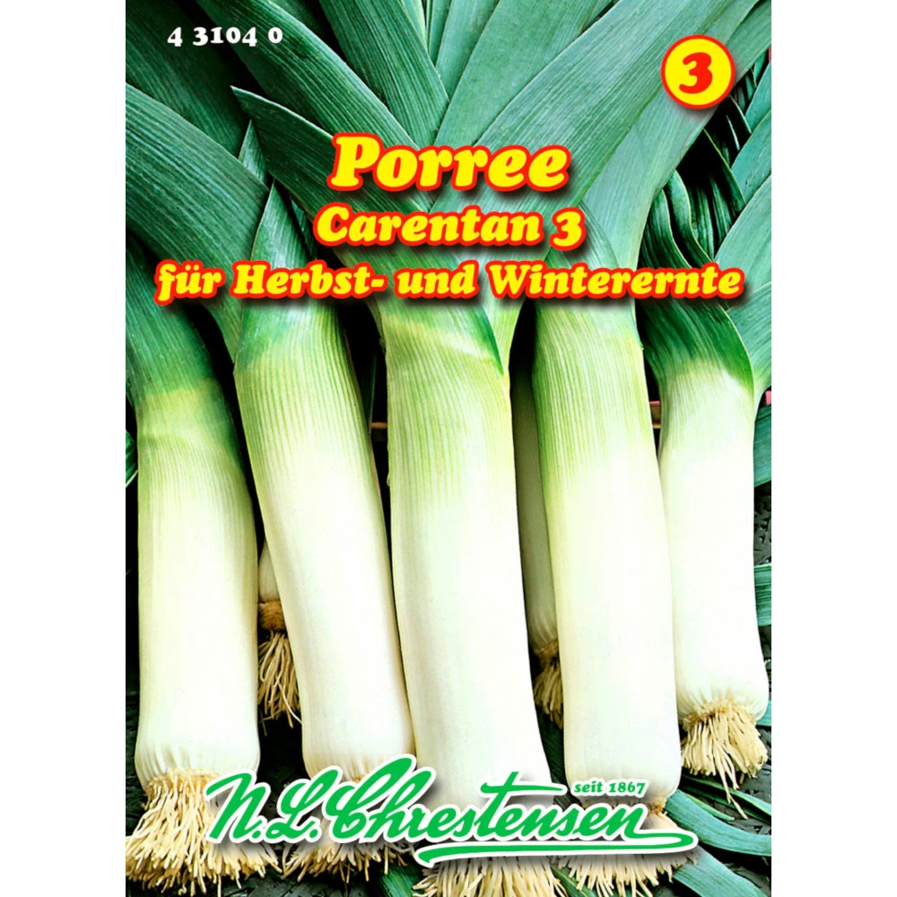 Der Porree Carentan 3 mit mittellangem, fast geradem Schaft ist eine GemĂŒsesorte, welche im Herbst als auch Winter erntbar ist. Die Tatsache, dass der Porree winterhart und es möglich ist bis im FrĂŒhjahr zur ernten, zeichnet den Carentan aus.