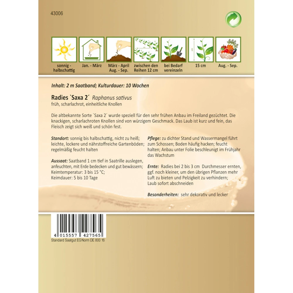 - Saatgut Radies âSaxaâ, ca. 2 Meter Saatband