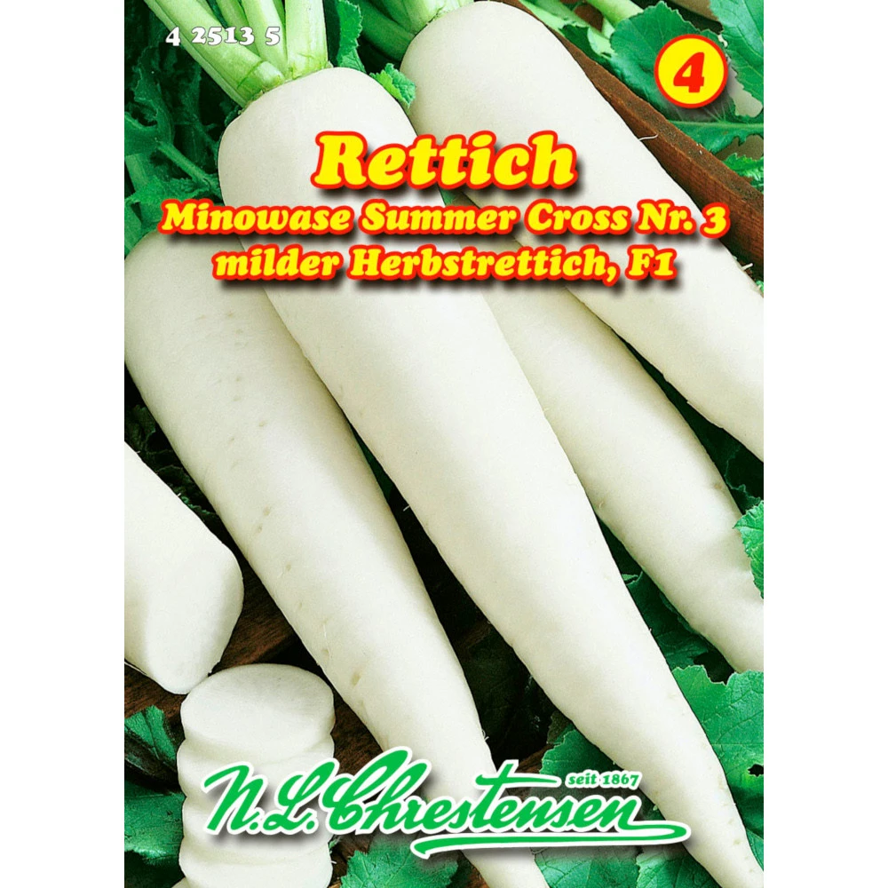 Der Rettich Minowase Summer ist eine vitaminreiche und milde Herbstsorte. Seine langen Rüben eignen sich ideal für den Frischverzehr oder für Salate. Darüber hinaus besitzt das Gemüse über eine gute Resistenz gegenüber Krankheiten.