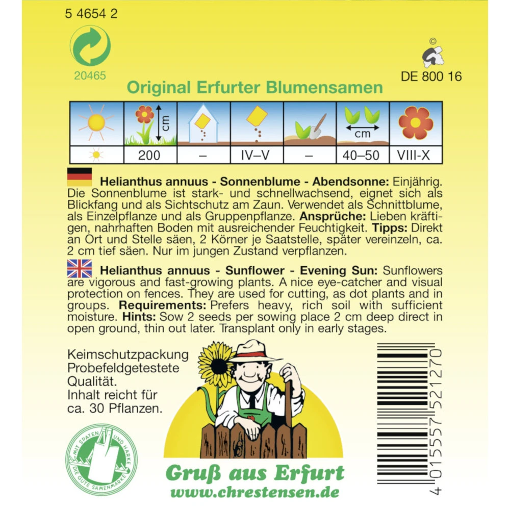 - 1 x Saatgut Sonnenblume Abendsonne (ausreichend für ca. 30 Pflanzen)