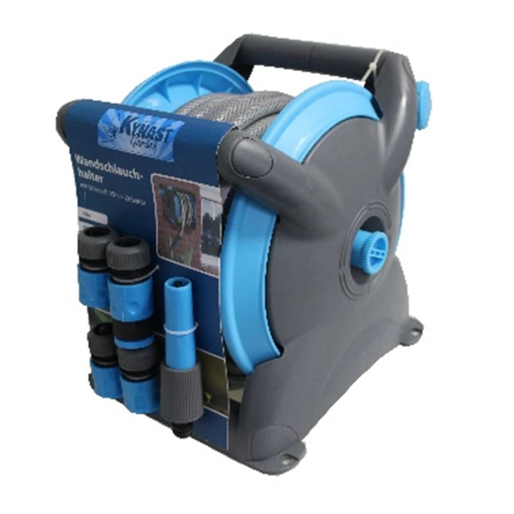 Schlauchhalterung Garten für Wandmontage aus Kunststoff mit 15 m + 1 m Schlauch und Zubehör