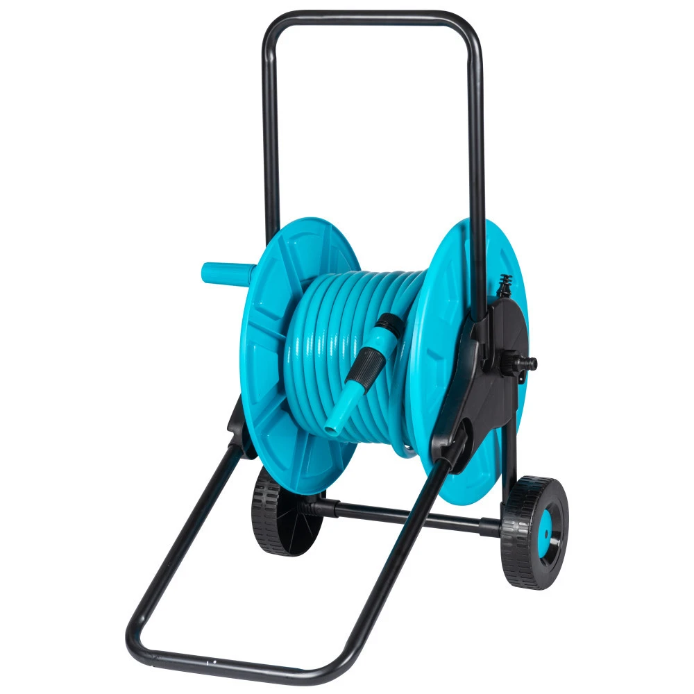 Der Schlauchwagen Starter Set ist mit seinem stabilen Metallrohrgestell und blauem Kunststoffgehäuse ein passendes Zubehör für die Gartenbewässerung. Das Set besteht aus einer Schlauchtrommel, einem 20m Gartenschlauch, einem 4-teiligen Anschlussset und einer Spritze. Dank seinen Rädern lässt sich der Aufroller mit Leichtigkeit an den richtigen Ort fahren.