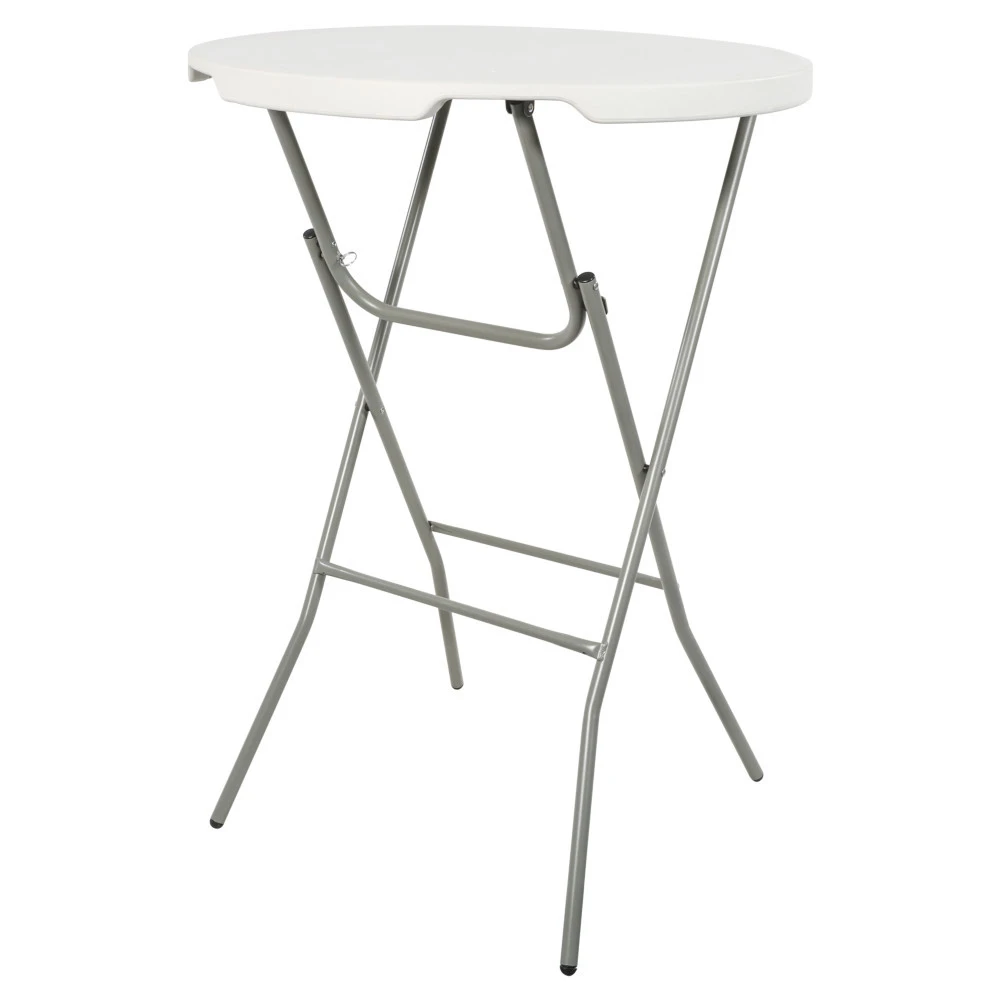 Der klappbare Stehtisch mit Metallrahmen lĂ€sst sich im Handumdrehen fĂŒr spontane Besucher aufbauen. Die Tischplatte ist aus 50 % neuem und 50 % recyceltem Kunststoff mit 80 cm Durchmesser und bietet ausreichend Platz fĂŒr GĂ€ste. Bei Nichtgebrauch ist der Stehtisch platzsparend zusammenklappbar.