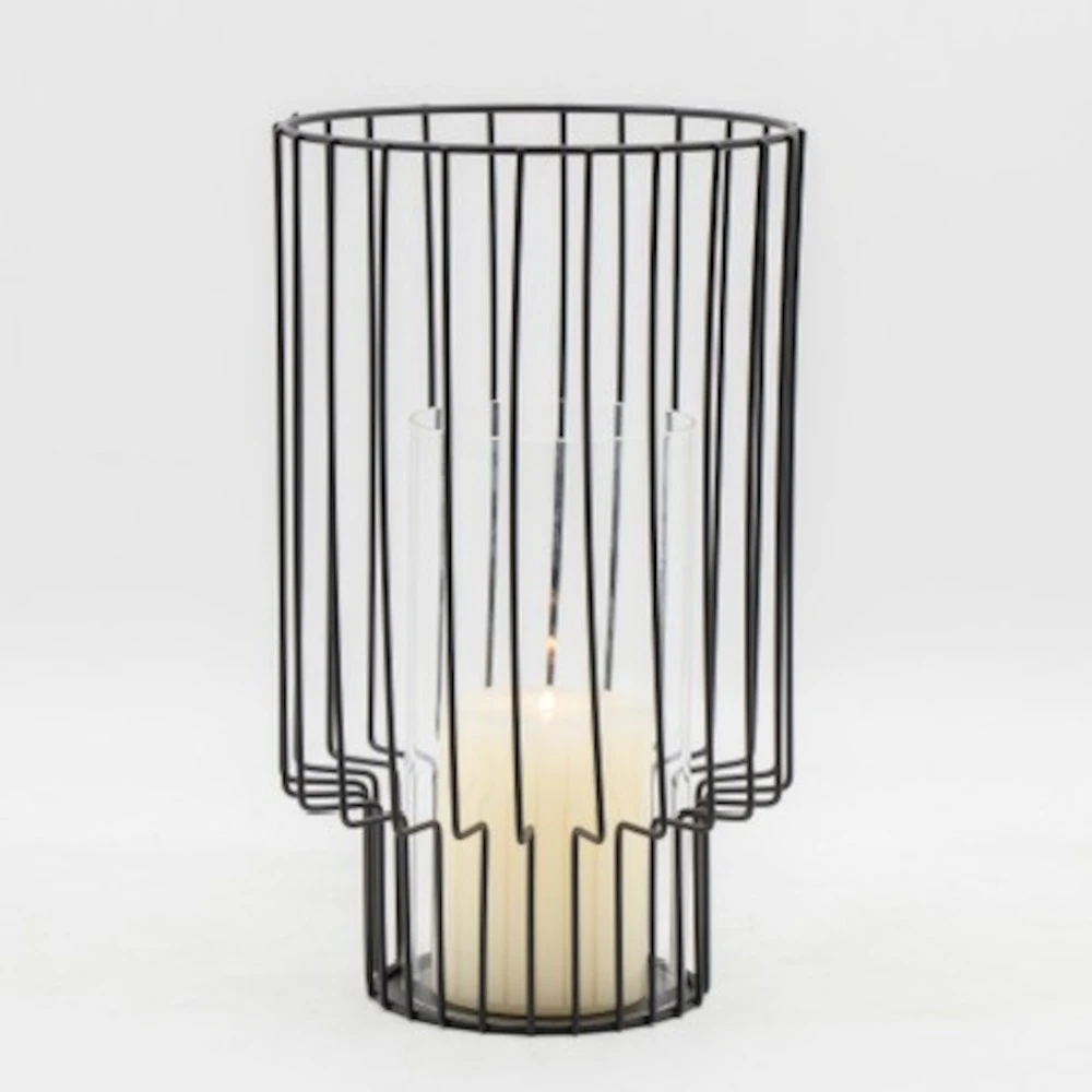 - 1 x Windlicht mit Glaseinsatz rund Ă 18 cm x 30 cm in Schwarz